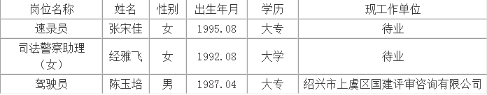 绍兴市上虞区人民法院2023年面向社会公开招录编外工作人员拟录用人员公示(一)