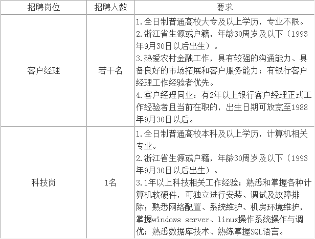 上虞富民村镇银行成立于2014年,由温州鹿城农商银行作为主发起行,在上虞发起设立的新型农村金融机构,目前上虞区两家法人银行之一。成立至今,已开设总行营业部、崧厦支行、道墟支行、东关支行、沥海支行和丰惠支行6个营业网点及曹娥和梁湖2家金融便民服务点,存贷规模超50亿元,被绍兴市人民政府评为服务“三农” 发展优秀集体,荣获全国2019年度-2022年度“百强村镇银行”、上虞区“2019年度发展贡献奖”、“2019年度金融创新支持经济发展优胜单位”、“2021年度金融支持经济发展考评一等奖”、“2021年度金融支持经济发展考评一等奖”。我行发展前景广阔,现因业务发展需要,特向社会公开招聘以下英才,欢迎有志之士加入。