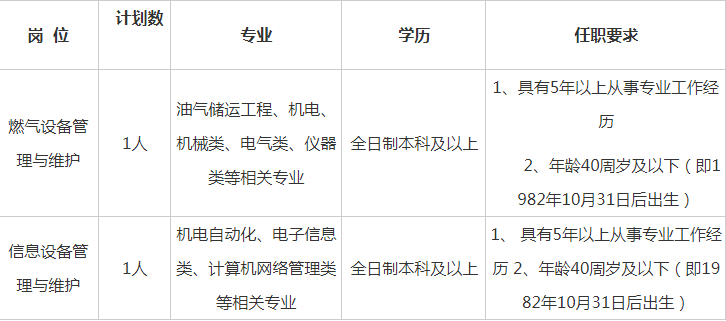公司坚持以“安全运行、保障供气、优质服务”为经营方针,大力推进燃气基础设施建设,积极提升供气保障能力,助力柯桥“国际纺都、杭绍星城”建设。现根据工作需要,决定公开招聘2名设备管理与维护人员,现公告如下: