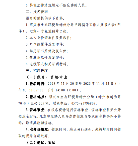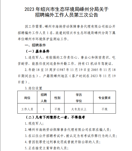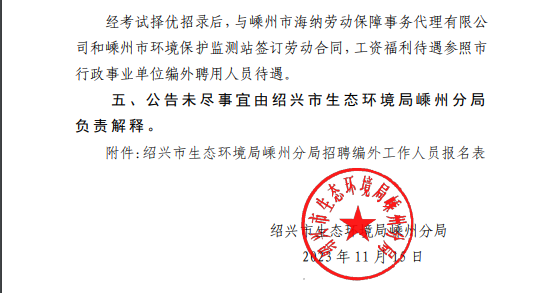 2023年绍兴市生态环境局嵊州分局关于招聘编外工作人员第三次公告