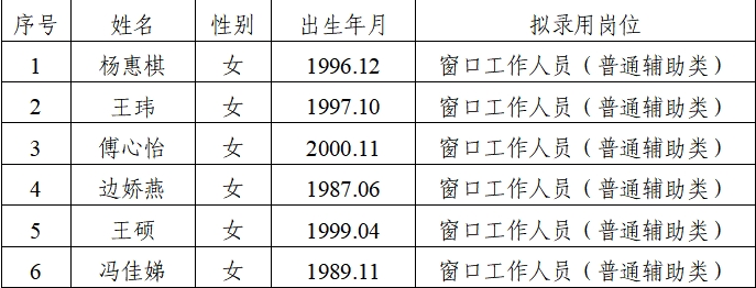 4.拟录用人员名单如下: