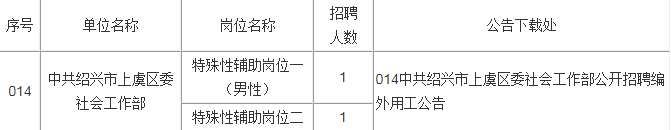 上虞区机关事业单位面向社会公开招聘编外用工,具体见下: