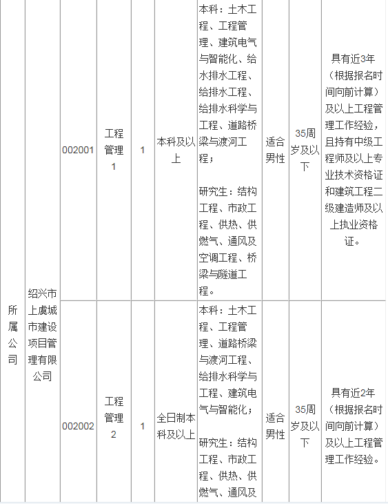 绍兴市上虞城市建设集团有限公司是经区政府批准成立的国有企业。因经营业务发展需要,现面向社会公开招聘10名合同制职工。有关事项公告如下: