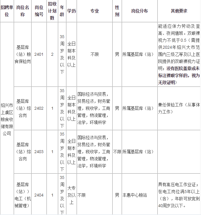绍兴市上虞区粮食收储有限公司是区发改局下属的国有企业,从事国家政策性粮油的收购和储存,因业务发展需要,现面向社会公开招聘5名合同制职工。具体招聘事项公告如下: