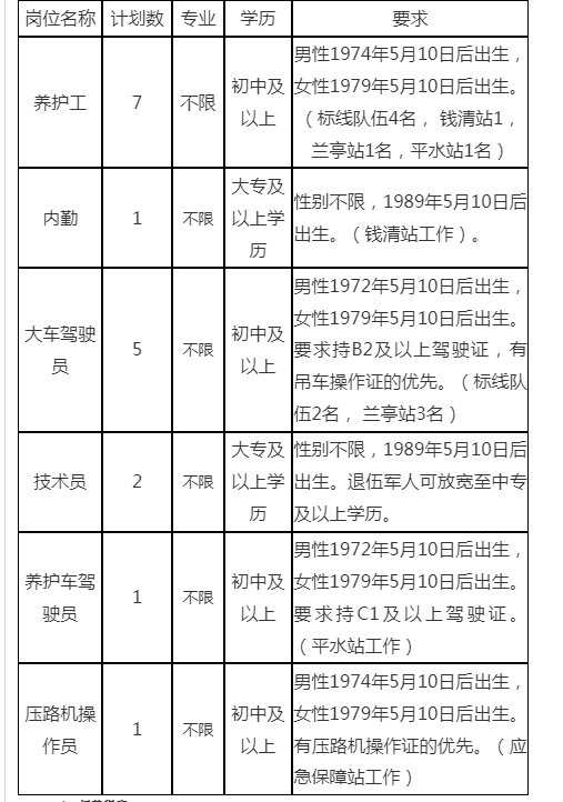 为进一步加强公路养护和应急抢险工作,经研究,本单位面向社会公开招聘若干工作人员,现将有关事项公告如下:
