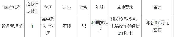 一、招工计划(详见下表)