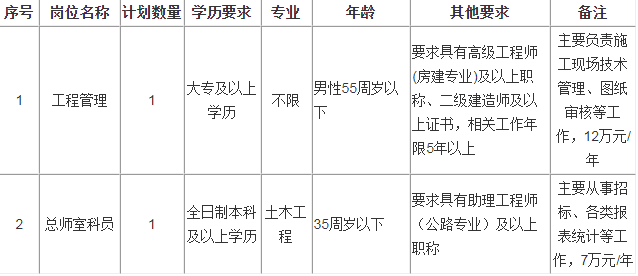 为满足企业业务发展需要,现面向社会公开招聘劳务派遣人员2名,具体事项如下:
