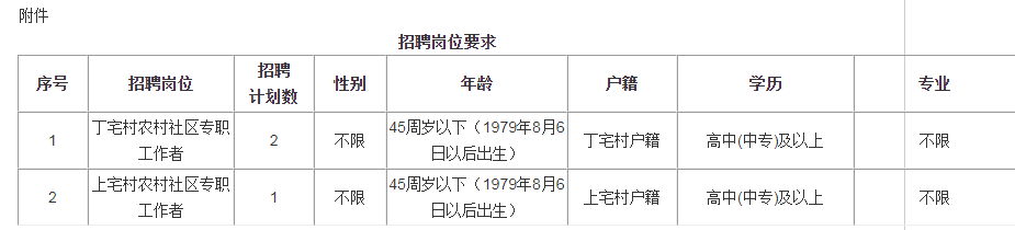(一)招聘计划:丁宅乡农村社区服务中心工作人员(即普通农村社区专职工作者)3名。(岗位要求详见附件)