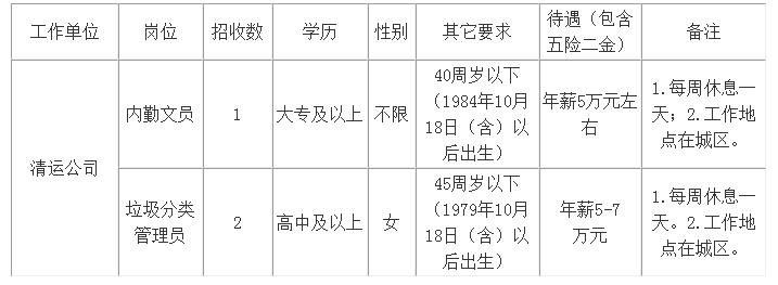 绍兴市上虞环境卫生管理集团有限公司(以下简称“集团”)是经区委区政府批准成立的国有独资企业,主要负责城市卫生保洁、垃圾清运和处置工作。集团于2016年批复成立,拥有子公司7家。为满足集团下属子公司生产经营业务发展需要,现面向社会公开招聘一线临聘职工3名。有关事项公告如下: