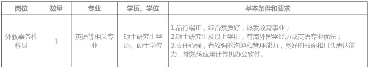 现因学校发展需要,拟向社会公开招聘国际交流合作处科员1名。