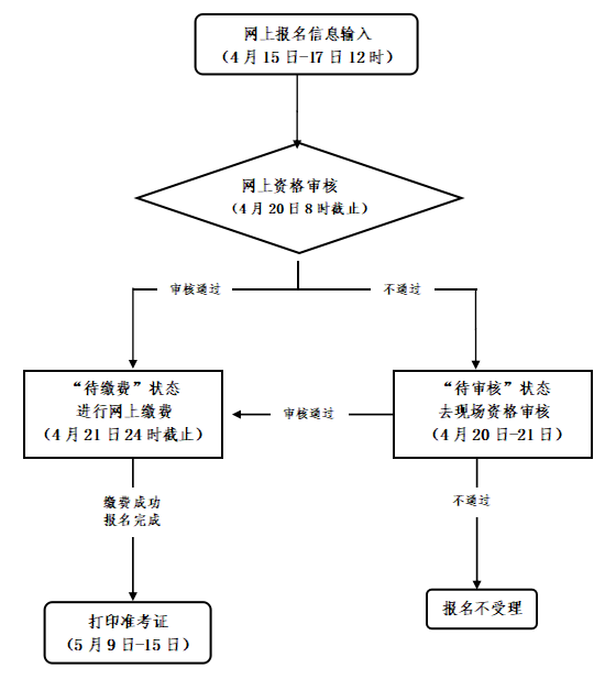 (2)4月20日8:00前,报考人员须登录报名网站查询审核状态,只有报名状态为“待缴费”的考生,表示网上资格审核通过,可按要求进行网上缴费确认;仍显示为“待审核”状态的则表明资格审核未通过。