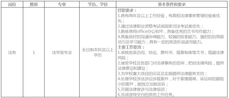 现因学校发展需要,拟向社会公开招聘法务1名。