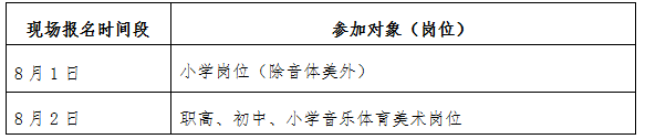 提醒:现场报名原则上须考生本人参加。对于上述安排中,确有实际困难需调整时间的考生,也可在规定报名时间内向工作人员说明情况后准予现场报名,但截止至8月2日16:30尚未报名的,不再受理。