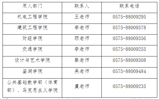 (二)人事处联系电话: 0575-88009054(金老师)、0575-88009048(任老师)