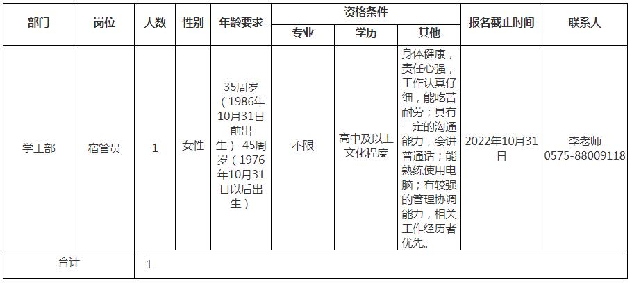 学校现有梅山、镜湖两个校区,占地面积912亩,拥有全日制在校生15000余人。现设机电工程学院、建筑工程学院、财经学院、商贸学院、交通学院、设计与艺术学院(腾讯云国际互联网学院)、鉴湖学院(纺织学院、黄酒学院、健康学院)、公共基础教学部部(马克思主义学院、体育部)等二级学院(部)。开设机电一体化技术、工程造价等48个专业。为适应学校进一步发展的需要,现面向社会公开招聘工作人员1名,用工性质为编制外合同工(劳务派遣)。