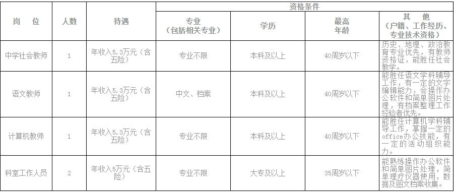 3.所需材料:本人身份证、学历证书、教师岗位需带教师资格证书、近期免冠彩色照片1张